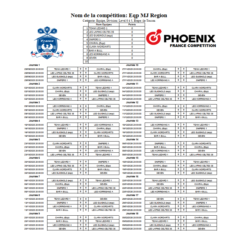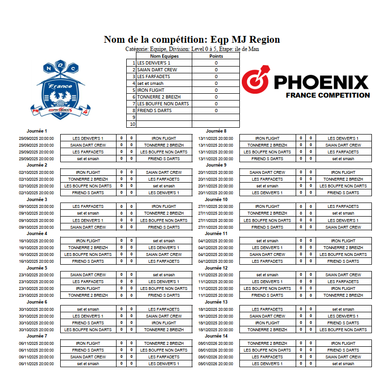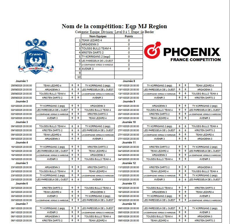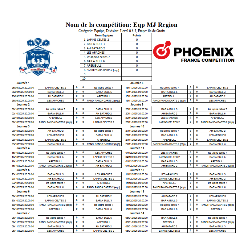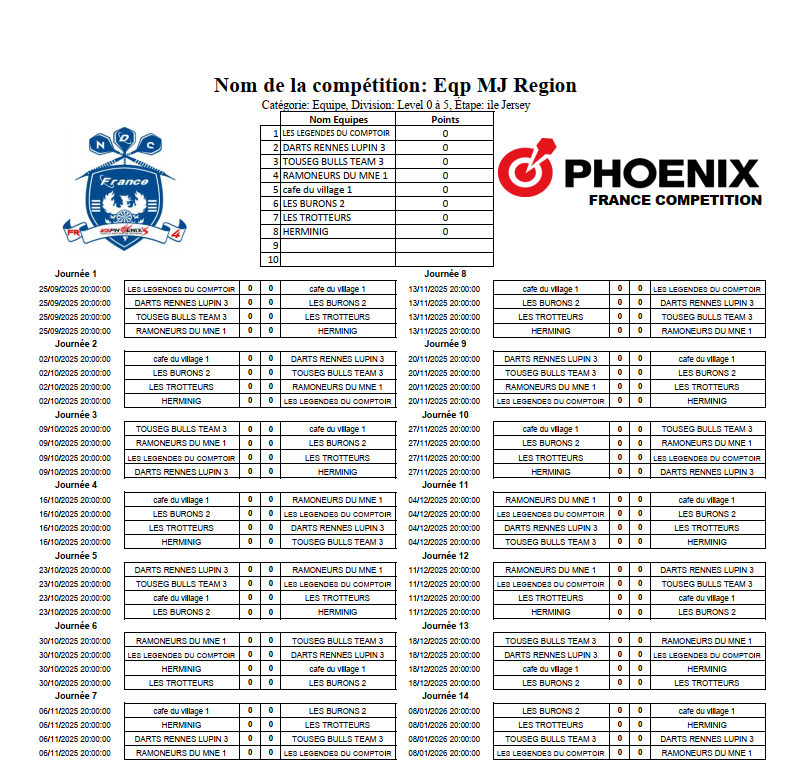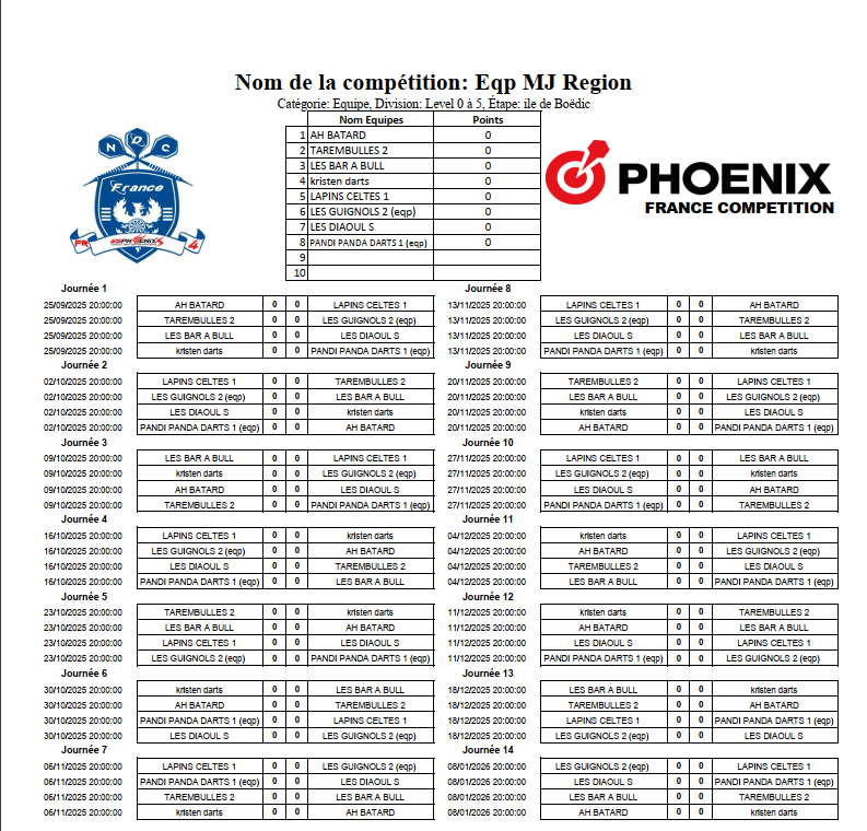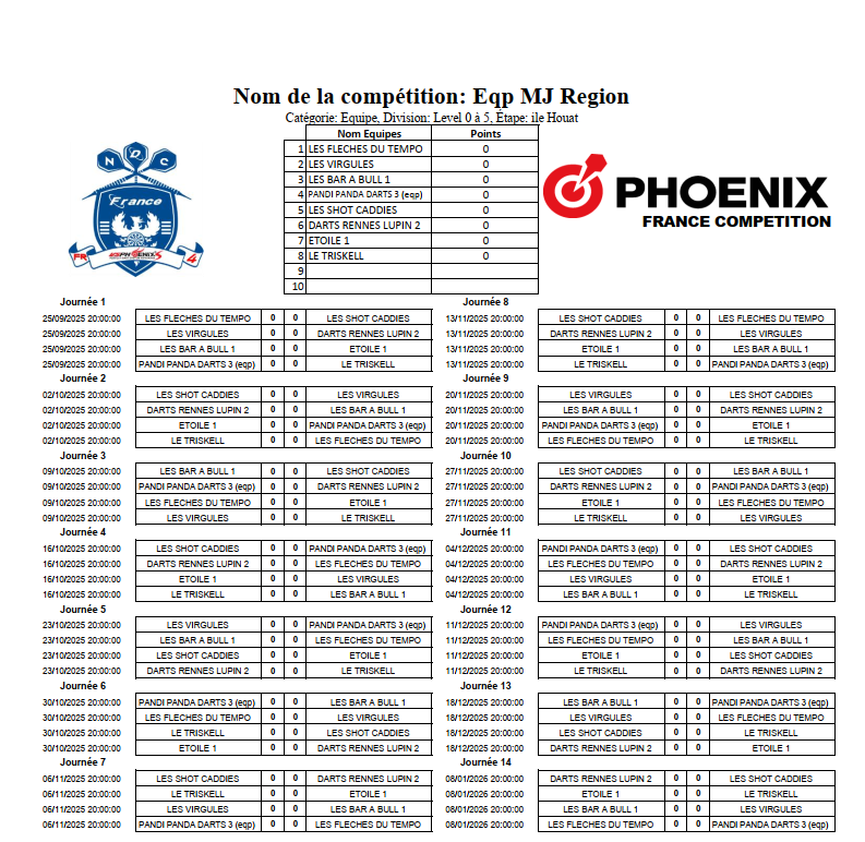 En tant que partenaire officiel de la Phoenix France Compétition, Morbihan Jeux vous propose un aperçu complet des tournois et événements à venir. Que vous soyez un passionné de fléchettes ou un compétiteur aguerri, ce calendrier est votre ressource idéale pour suivre toutes les dates importantes de la saison.